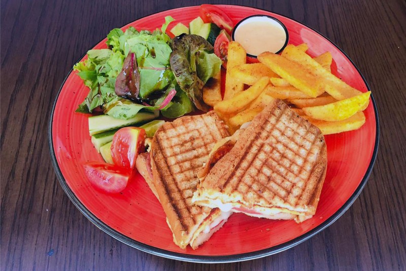 Ham Cheddar Cheese Tomato Paste Fried Egg