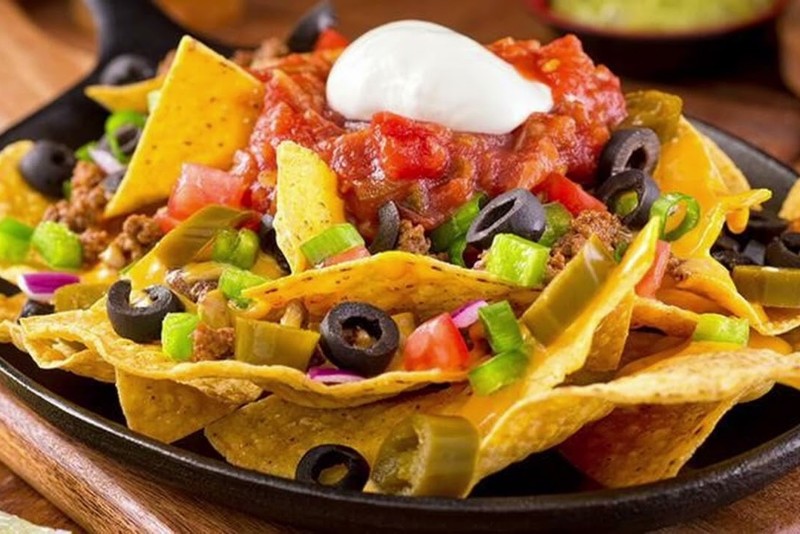 Corn Chips Onion Pepper Mexican Bean Corn Cheddar Cheese Avacado Sauce Yoğurt.